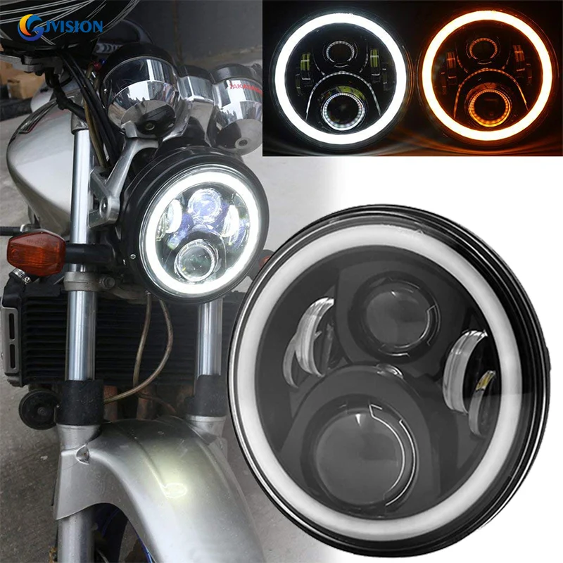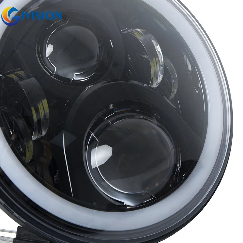 .image of Black/Chrome 7 inch Hi/Low beam projector headlights 7'' Halo Ring Angel eyes led headlamp for Yama