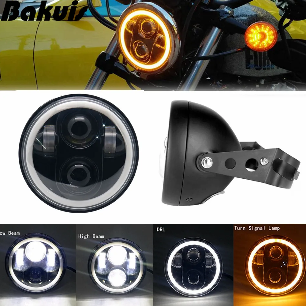 .image for 5.75" Motorcycle Halo Lights 5.75 inch Led Headlamp Housing Bracket For Night Rod Iron 883 Dyna Spo
